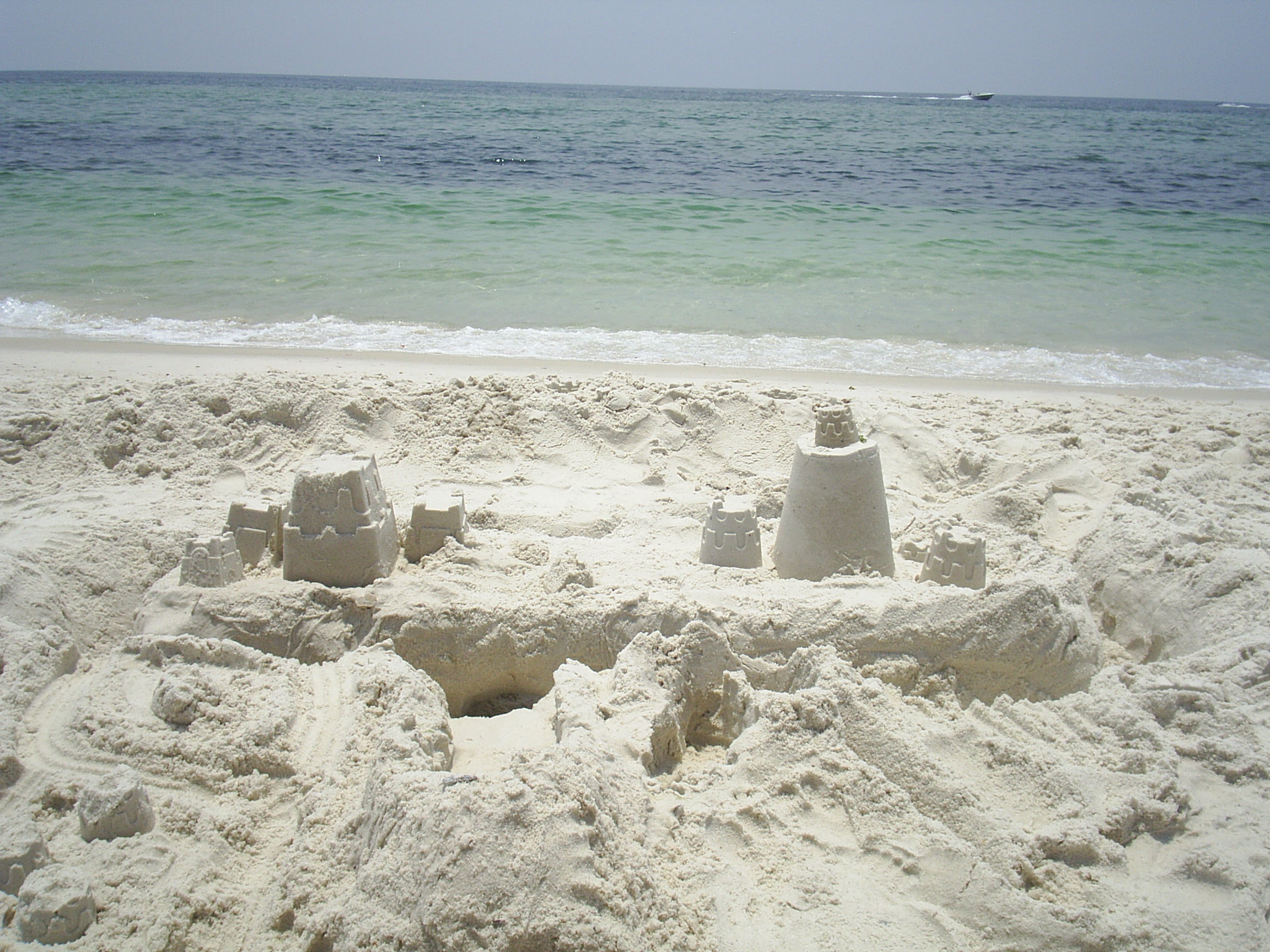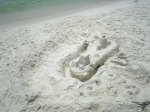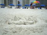 As I said, J was into the sand castle thing, so here’s some pix my friend took – the only thing you can’t see here is the waterfall… we were trying to head back to the condo, so the bucket he used to create it had already been picked up. You can, however, see where it was… it looks like a slide in the sand.