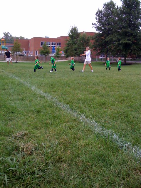 We had a great example of this a couple of weeks ago, when S played her first soccer game. She ran really hard, and even scored a goal, for about the first five minutes… Then she pulled her shirt over her head and ran around. Once the adults laughed… well, she did it off and on for the rest of the game… Focus is not a strong suit.